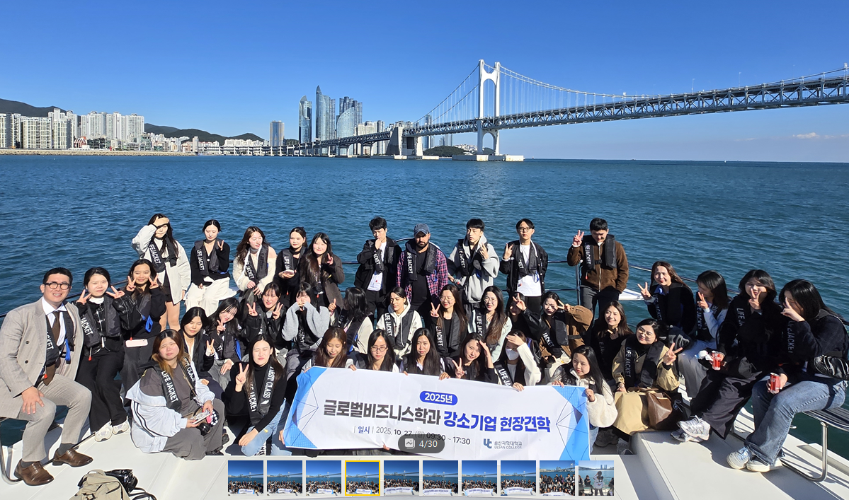 핫이슈 학과게시판 학과게시판 핫이슈 학과공지사항 갤러리 메인으로 이동 학과게시판 학과소개 학과자랑 및 취업 교수 소개 학생자치활동 학과게시판 UC포털 회원서비스 닫기 핫이슈 핫이슈 학과공지사항 갤러리 닫기 핫이슈 SNS 목록열기 SNS 목록닫기 FACEBOOK 공유하기 TWITTER 공유하기 BLOG 공유하기 URL주소복사하기 인쇄 총 83개 제목 내용 작성자 검색어를 입력하세요 검색 2024학년도 학사학위 전공심화 운영진단 ‘A등급’ 획득 서용한 2025.11.12 조회수 119 글로벌비즈니스학과, ‘울산스타트업페스타 2025 외국인 창업 경진대회’ 2개 팀 동시 수상 서용한 2025.11.03 조회수 69 ‘Stand & Blend Party’, 서로 다른 우리가 하나로! 서용한 2025.10.28 조회수 73 글로벌비즈니스학과, 강소기업 현장견학 및 취업박람회 참여 프로그램 서용한 2025.10.27 조회수 43 글로벌비즈니스학과, 미포조선 외국인 근로자 대상 리더십 교육 ‘LEAD-UP 프로그램’ 성공적 운영 서용한 2025.09.30 조회수 33 (주)예다연과 K-Beauty 전문인력 양성 위한 산학협력 협약 체결 서용한 2025.07.04 조회수 2079 울산과학대학교, ‘웰리 키즈랜드 리뉴얼 기획 프로젝트’ 성과발표회 개최 김나영 2025.06.27 조회수 2058 Global Synergy Forum & Standing Brunch, 서로의 문화와 생각을 나누며, 글로벌 인재로 성장하는 시간 서용한 2025.06.17 조회수 32 12345678910